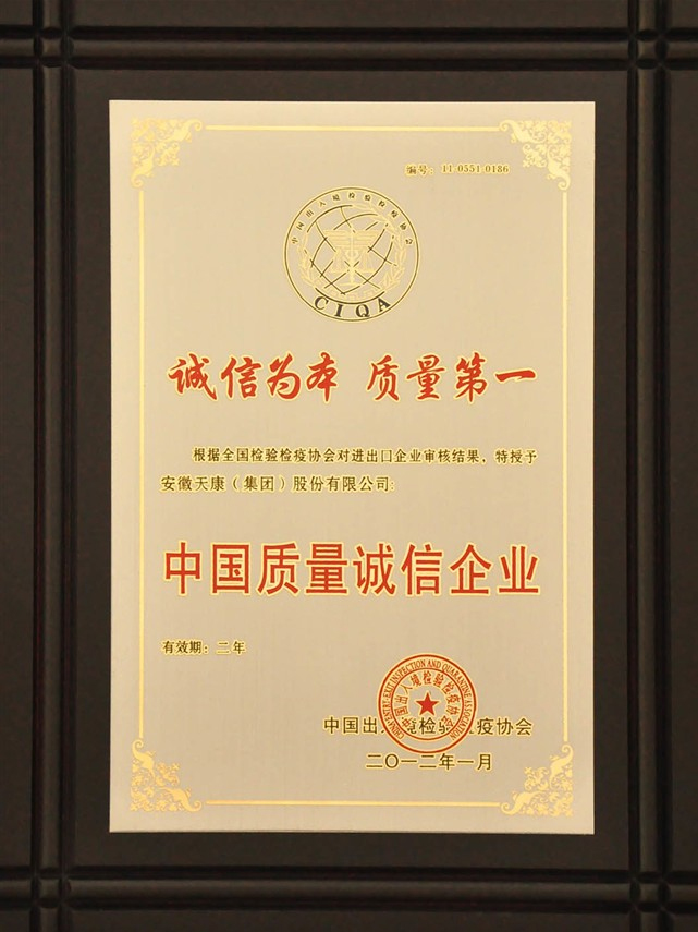 中國質(zhì)量誠信企業(yè)(2年)(中國出入境檢驗檢疫協(xié)會)