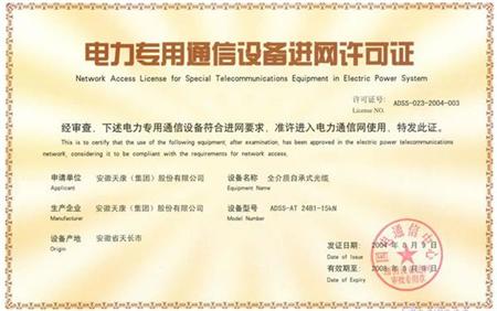 電力專用通訊設(shè)備進網(wǎng)許可證(正)