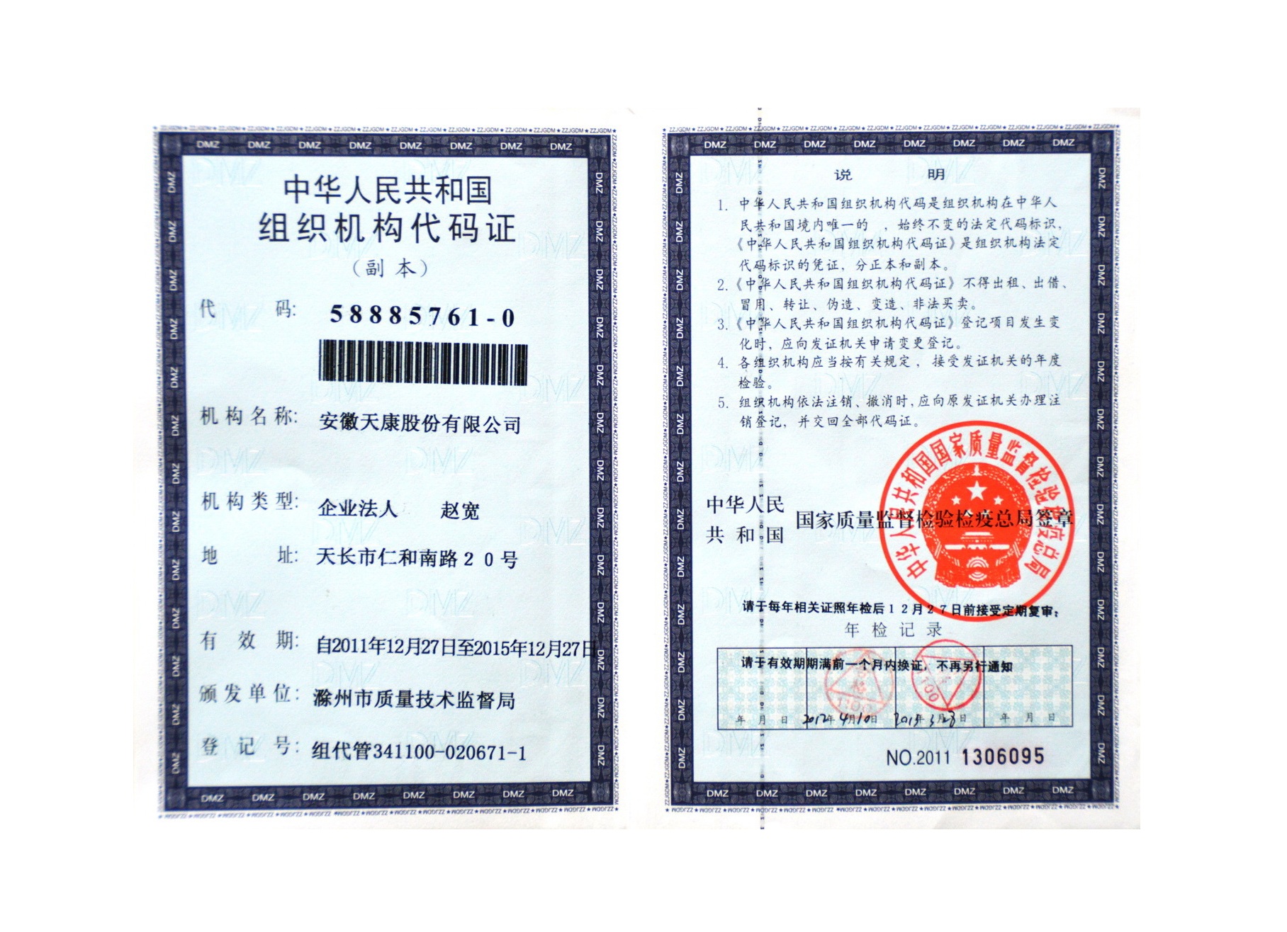天康集團(tuán)組織機(jī)構(gòu)代碼證